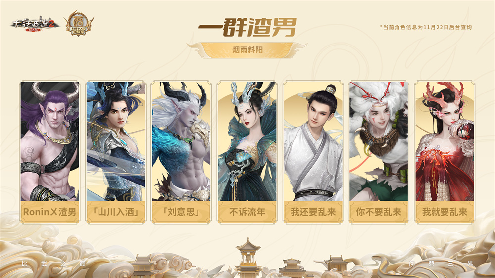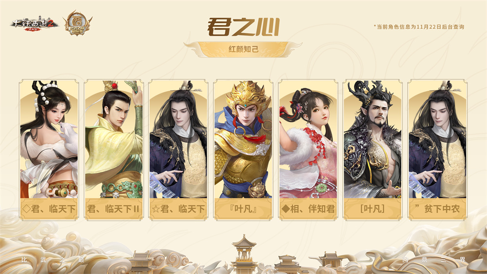 ⑤2023比武之巅荣耀赛的所有比赛均在天下第一比武服进行,参赛队伍拷号后,即可登录天下第一比武服进行赛前准备,本队成员之间可交易召唤兽不消耗亲密、交易灵宝不消耗契合等。