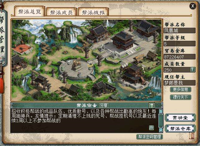 我接任帮主的目的不是争强好胜,帮派里的女玩家不少,我只希望帮派团结,大家开心,有空可以线下聚聚,大家增加友谊,增加感情。