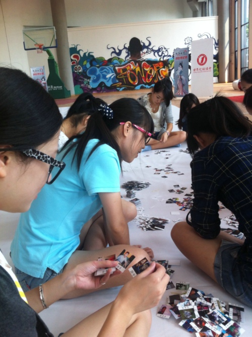 使用超过5万张真人照片拼成一幅超级巨画,这件事情光听起来就觉得是一件难度非常高的项目,因为每张照片不仅首先要一一处理,将重复的、像素低的、不合规格等通通调整好,还要将每张2寸大小的照片恰到好处地摆放在一张上百平米的画布上,并通过超级电脑让其还原为最接近原图色彩、明暗、纹理等的图片,输出成为一张完整的、清晰可辨识的巨幅拼图,接下来,就是用高写真纸质材料将其一张张地打印出来,剪裁好,再通过系列的线图、人员张贴等,先在平地上完成初步的拼图,待确认模拟实物效果可行后,再进行一次巨幅海报的现场人员拼图过程,将每一张2寸照片张贴在一块块约A3大小的纸板上,再用一块块纸板拼,在一块白色、已经人工标明坐标的画布上拼合成一张巨幅万人照片墙。