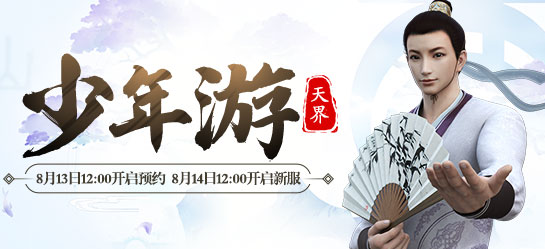 【少年游】新服已于8月14日开启预约,大家别忘了提前创建好角色,待明日12:00准时进服,聆听霍尊用纯净空灵的歌声唱响宣传曲,并跟随逍遥生、剑侠客踏入繁华长安,感受古风情义江湖中的快意恩仇、肝胆相照!