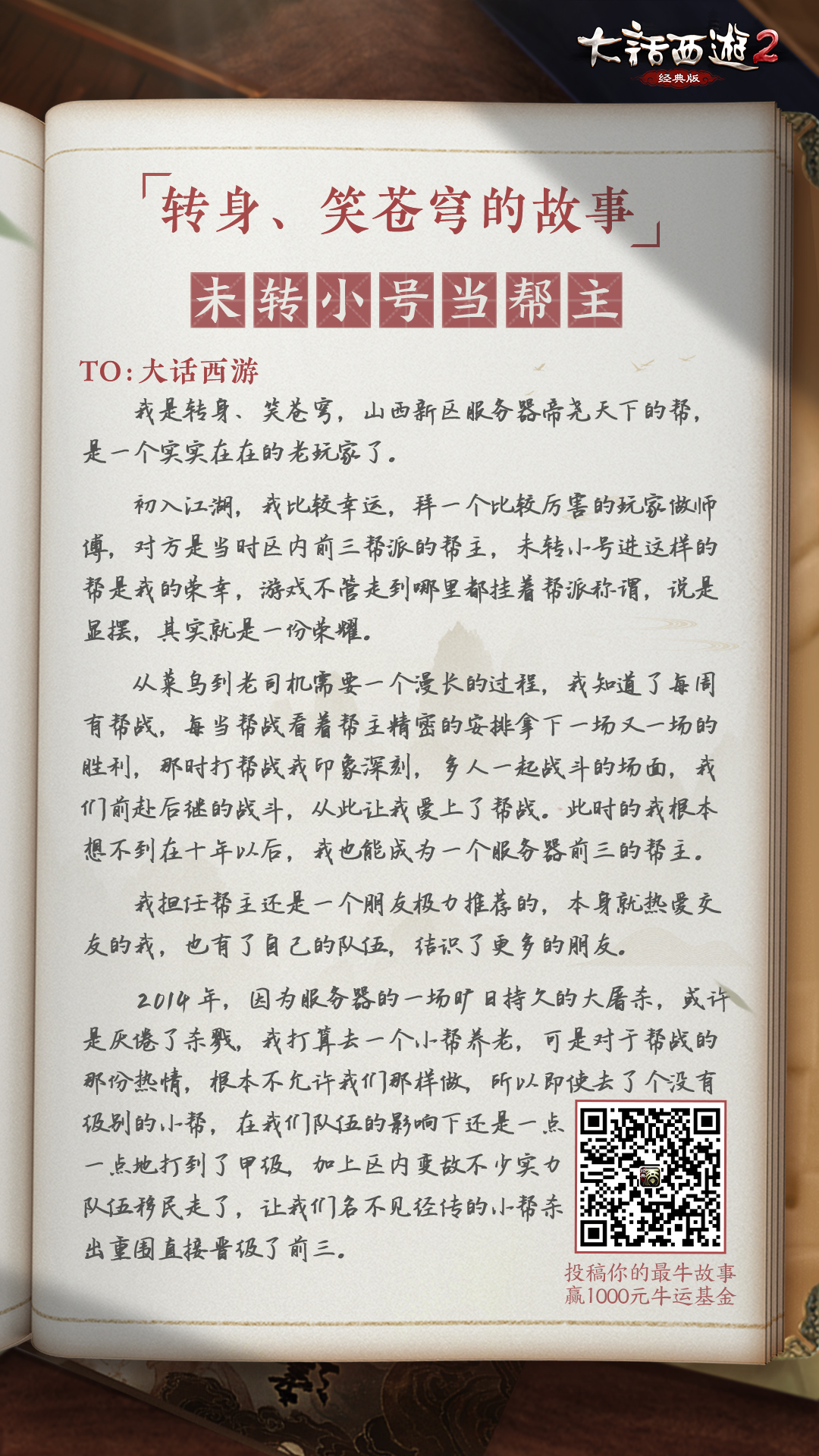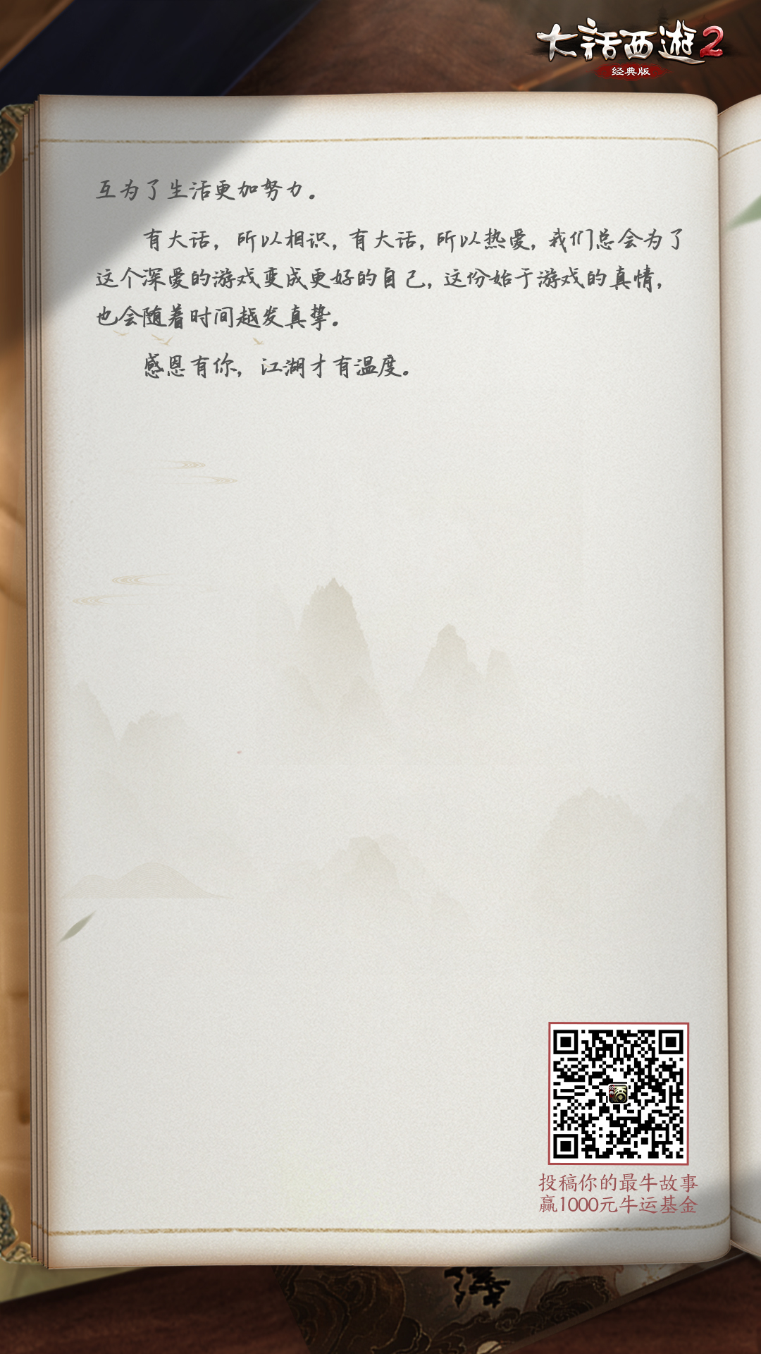 2、收到大家的投稿后,我们将选取优质内容,在公众号、官网等渠道放出,和所有大话玩家分享你的最牛故事!工作人员在十个工作日内联系您,将大话暖春牛运福利金发放至您提供的账户,请您确保填写的联系方式准确;
