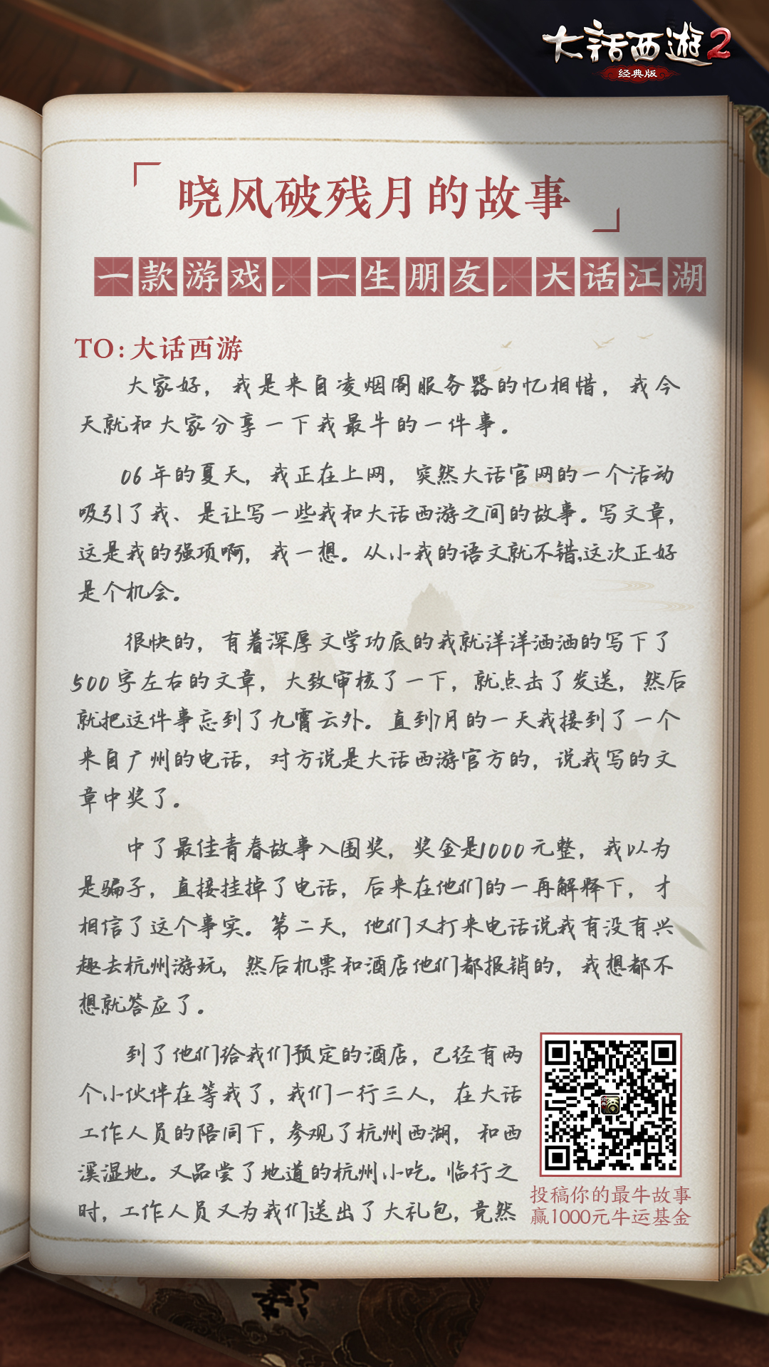 大话茶馆暖心营业中,你可有故事与我们一同分享?大话茶馆自营业以来,收获了许多玩家的积极投稿,每一个故事我们都认真阅读,细细记录,我们感受到了来自于大家的真情。为了表达我们对于大家大力支持的感谢,也为了遇见更多的最牛故事,我们决定将原本10个最牛故事获奖名额提升到20个!