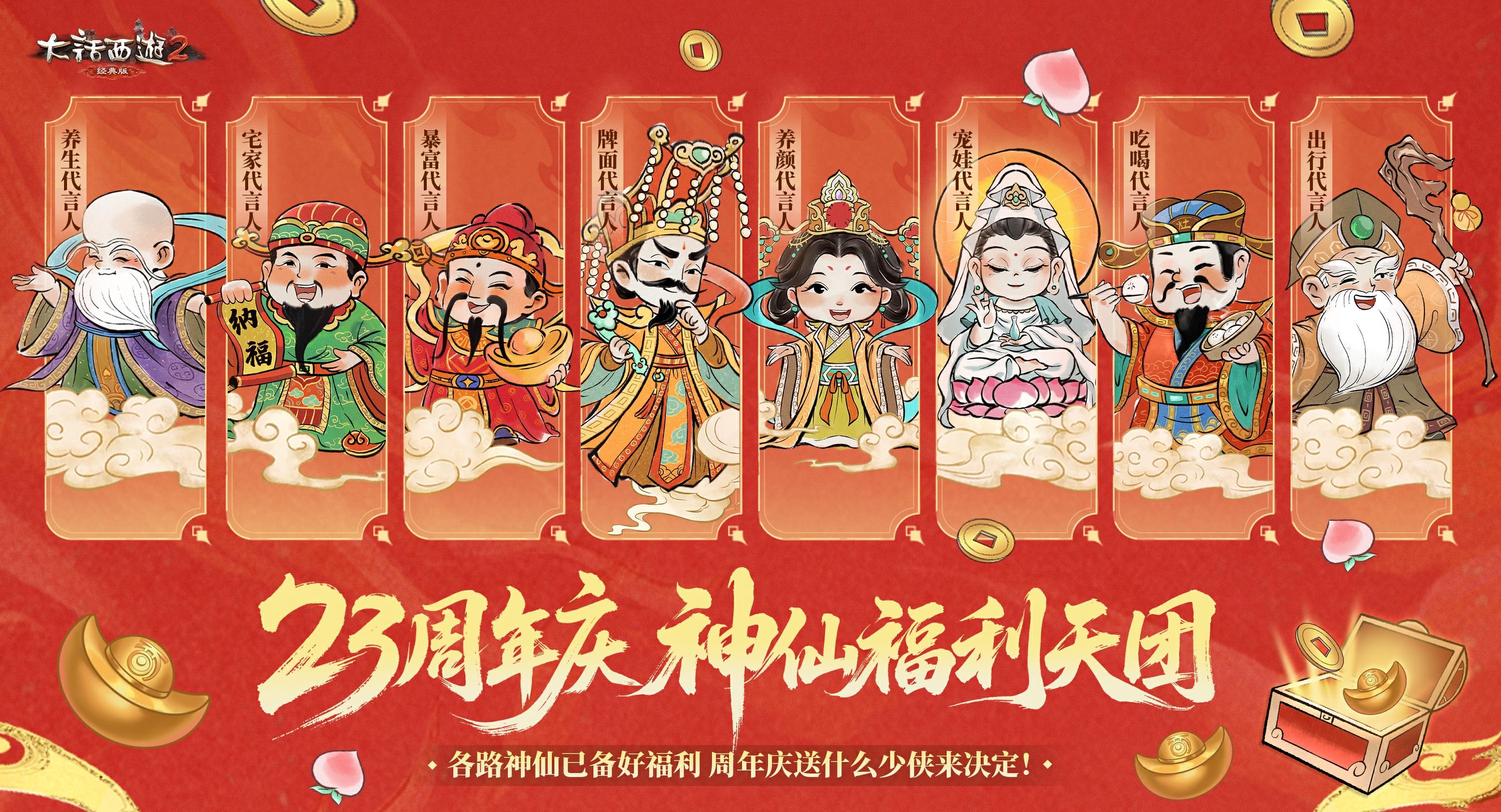 这不!在即将上线的二十三周年庆「神仙版本」中,不仅有鸡驴大神,我们更加联动了神仙福利天团,集体下凡满足玩家更多的福利心愿!