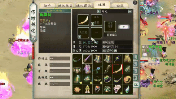 作坊点击“+”,自动筛选背包中的对应材料,没有的材料还可以直接给出提示问精灵哦。
