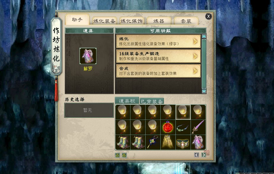 作坊新增【助手】功能,放入一件装备即可智能显示该装备的可用功能。尤其是当我们面对一件装备不知从何处下手来提升属性时,利用此功能可以有一个很好的指引方向。