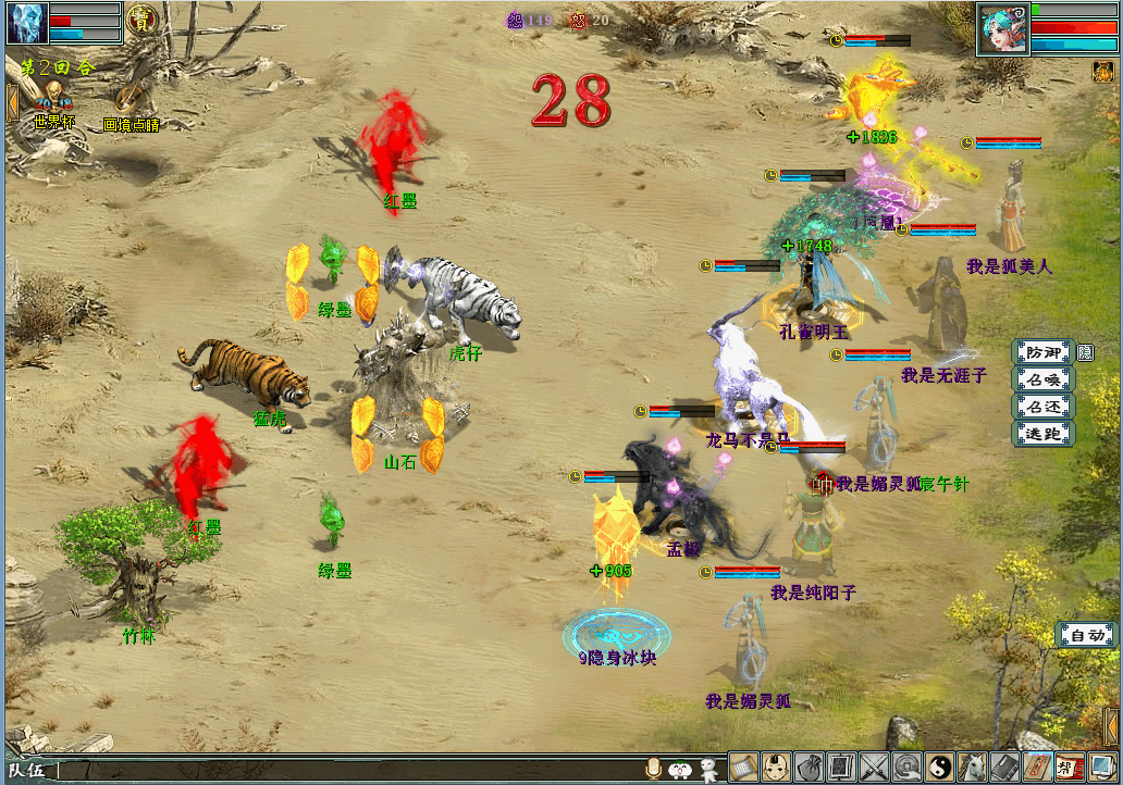 1.组队召唤兽PVE形式。战斗中人物只能召唤、召还、防御等,主要依赖召唤兽来作战。所有召唤兽都有机会加入战斗。召唤兽可攻击、施法、保护、拉药、防御。