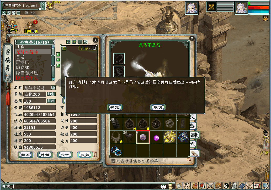3.百兽图下卷通过特定关卡可额外获得一次物品奖励,有机会获得神兵、六魂之玉、终极技能修炼丹等。