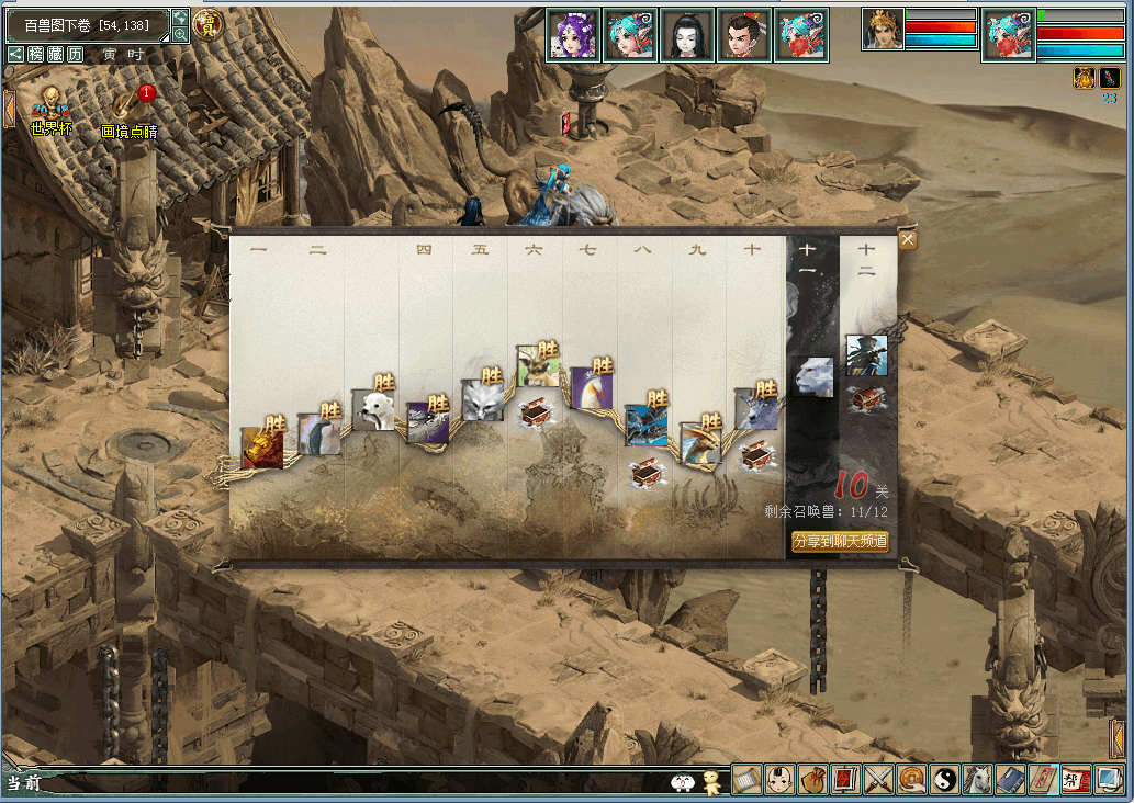 2.百兽图下卷中途退出,必须重新从第一关开始挑战。