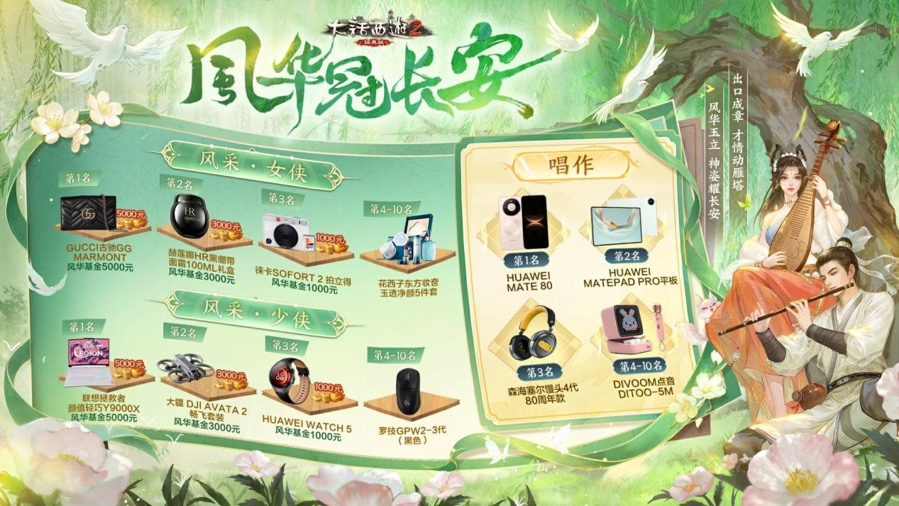 期待各位玩家踊跃参与2026「风华冠长安」活动,让我们一同欣赏你们独特的风采,万元风华基金、定制荣耀嘉奖、大牌奢品、高端数码潮品等丰厚好礼只等你们前来领取!