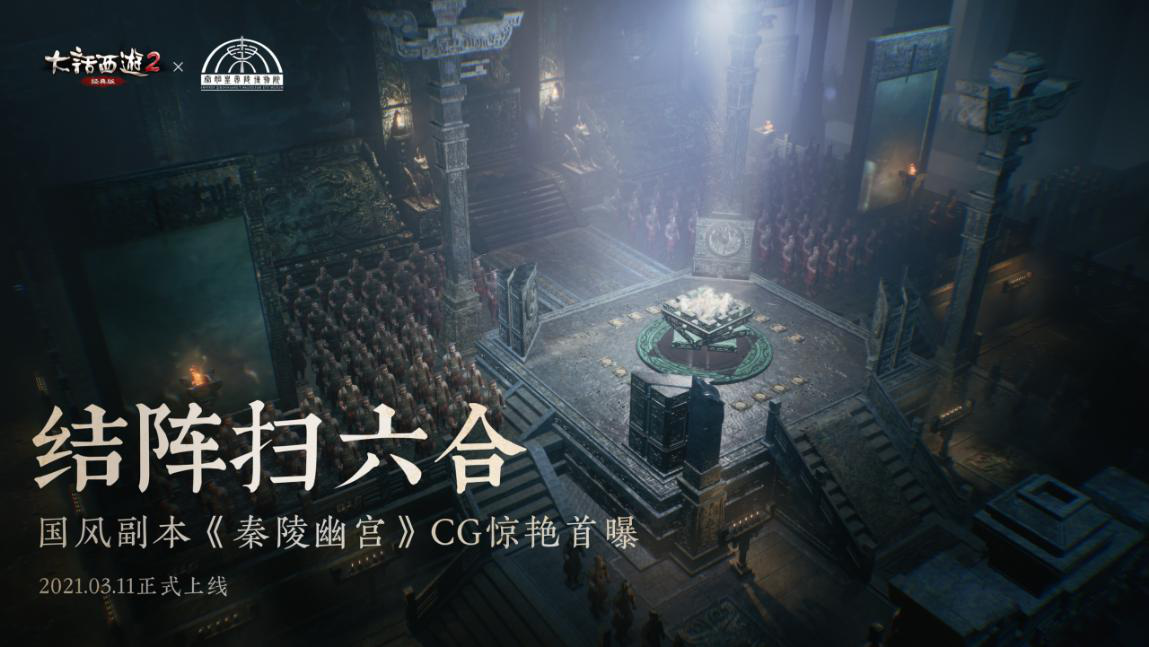 大话西游2“国风赋新·秦”计划火热进行中,3月11日全新副本【秦陵幽宫】即将全服上线,震撼CG首度今日曝光,带大家一起穿越两千年的时光,领略秦文化,并前往探索秦始皇陵埋藏千年的秘密!
